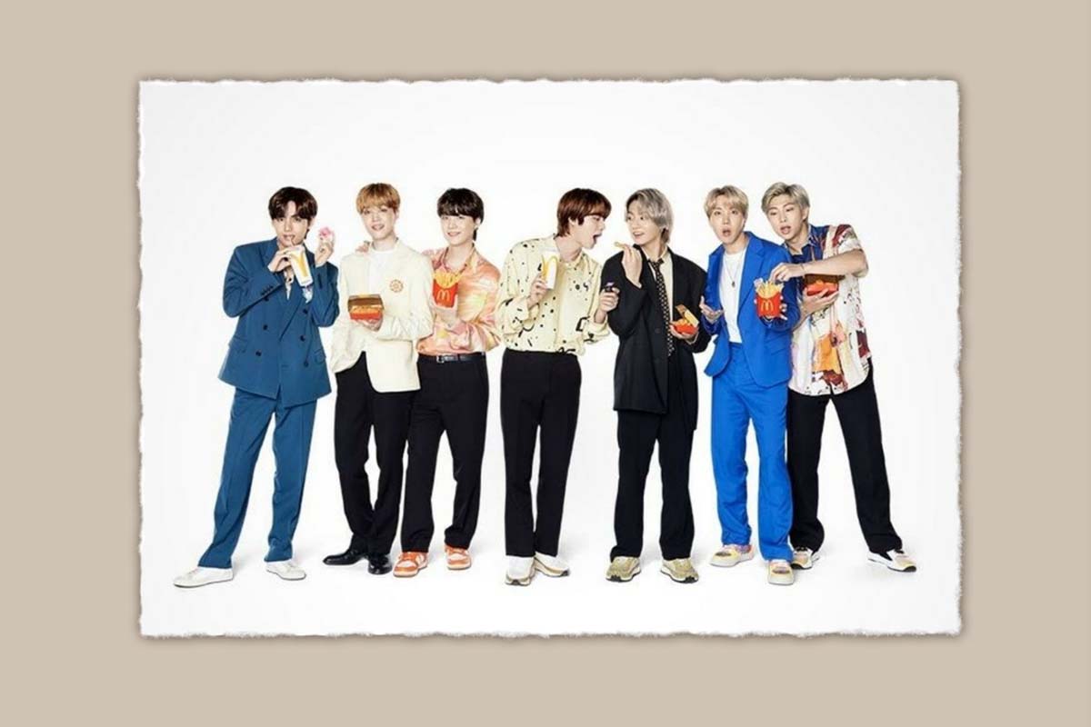 Grup band asal Korea Selatan, Bangtan Boys (BTS) ini berkolaborasi dengan waralaba cepat saji kelas dunia McDonald’s untuk menghadirkan menu makanan edisi khusus BTS. Program ini digelar secara masif hingga 50 negara di seluruh dunia. Bila dicermati, isi makanan itu sama saja dengan paket McDonald’s yang biasa. Yang menjadi pembeda adalah saus Korea dan kemasannya yang menampilkan logo BTS. Indonesia menjadi salah satu negara paling heboh dalam menyambut peristiwa ini.[1]